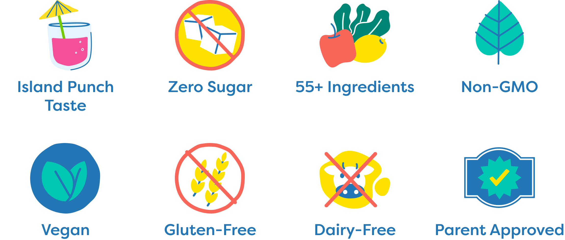 Kids Daily Fiber+ comes in an Island Punch flavor that kids love, and is sweetened naturally with monk fruit and allulose—a rare ingredient that tastes sweet but has minimal impact on blood glucose. No sugar crashes. No chalky ‘flavorless’ powders. Just a delicious drink they'll look forward to.
